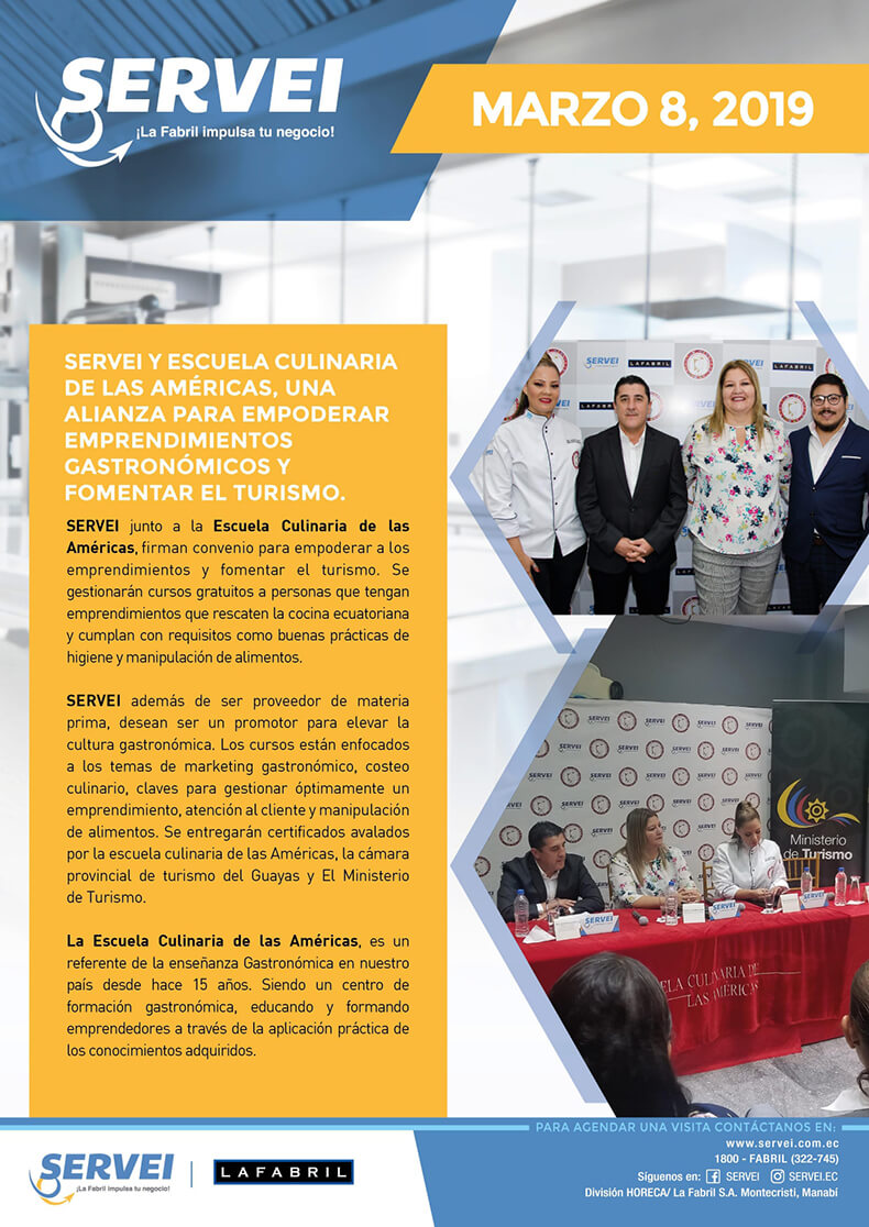 SERVEI y Escuela Culinaria de las Américas, una alianza para empoderar emprendimientos gastronómicos y fomentar el turismo SERVEI y Escuela Culinaria de las Américas, una alianza para empoderar emprendimientos gastronómicos y fomentar el turismoadmin2020-01-16T00:12:59-05:00marzo 8th, 2019|
